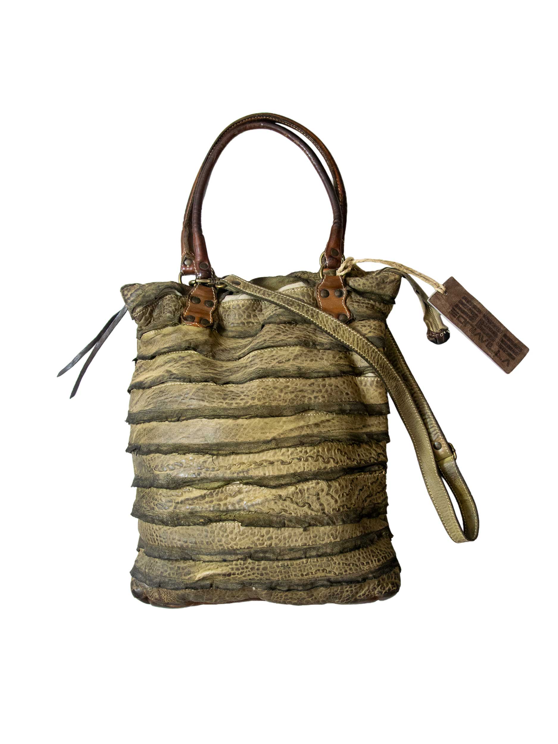 Crafted from vegetable-tanned bovine leather with a distinctive bark-effect finish, the KORX Tote combines a soft structure with everyday functionality. The tobacco hue enhances its artisanal surface, while the leather handles and adjustable strap offer versatile wear. Spacious, refined, and minimal, it is designed to suit daily use with understated elegance.